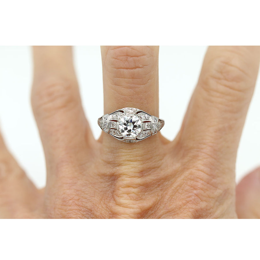 Art Deco 1.42 CTW Old European Cut Diamond Platinum Antique Engagement Ring GIA J/SI2