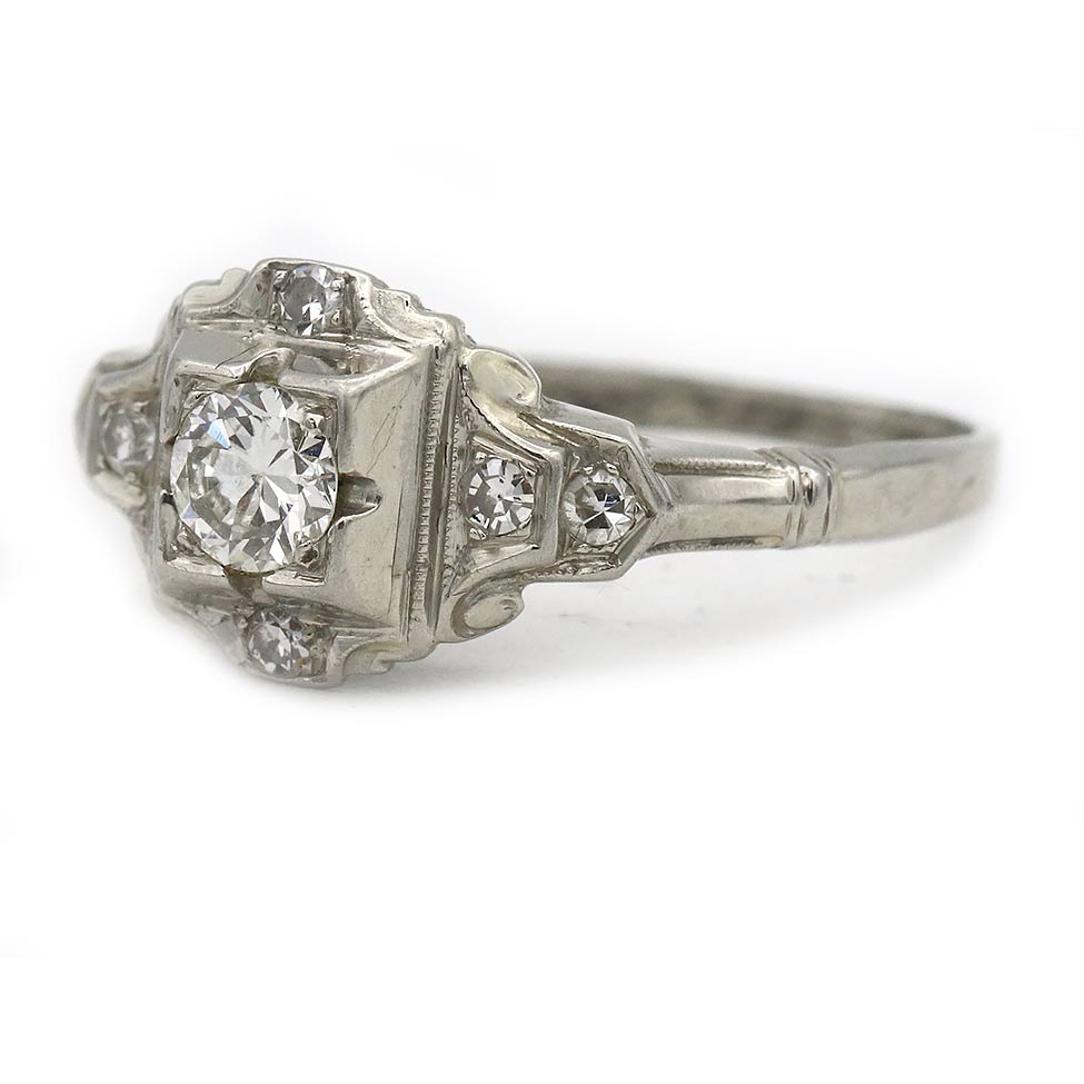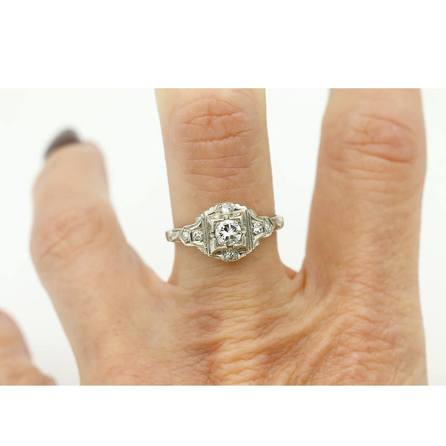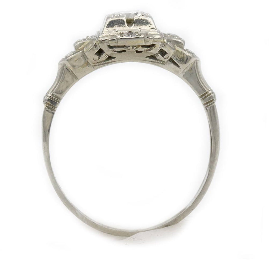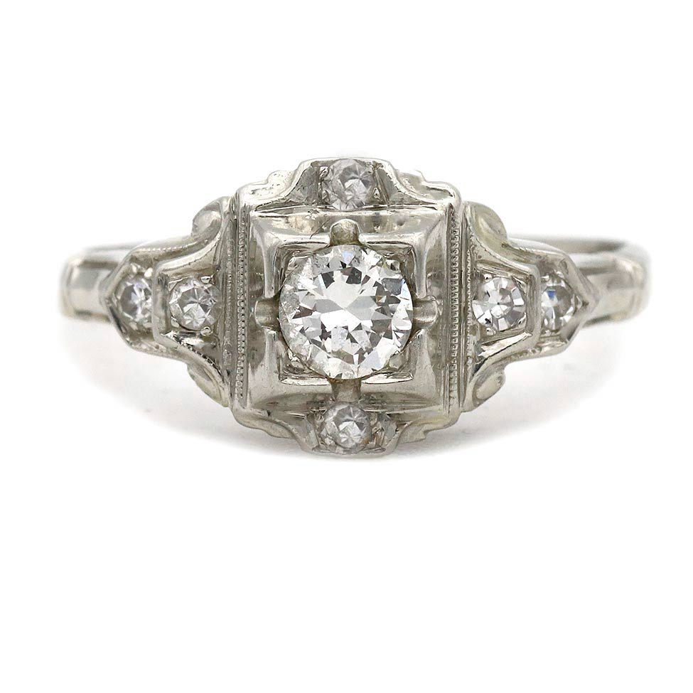 Art Deco .25 Ct Square European Cut Diamond Engagement Ring in 18 Kt White Gold