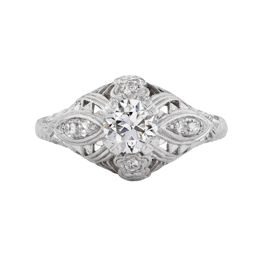 Art Deco .73 CTW Filigree Platinum Antique Engagement Ring Circa 1930s