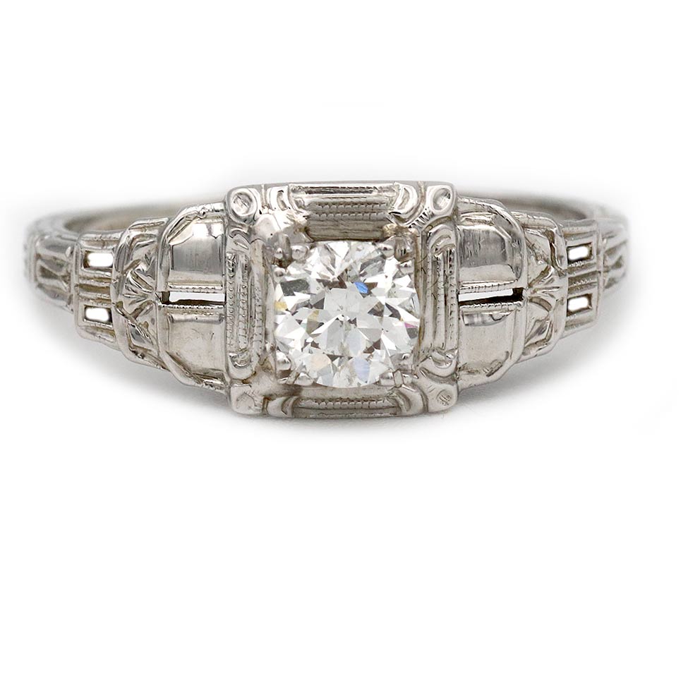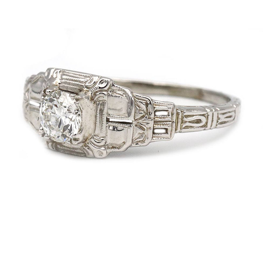 Vintage .60 CTW Solitaire 18 Karat White Gold Art Deco Engagement Ring