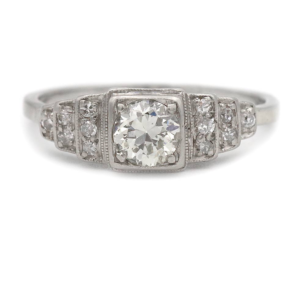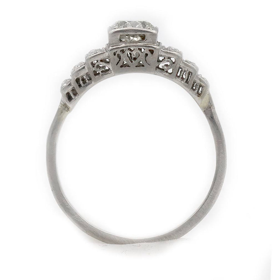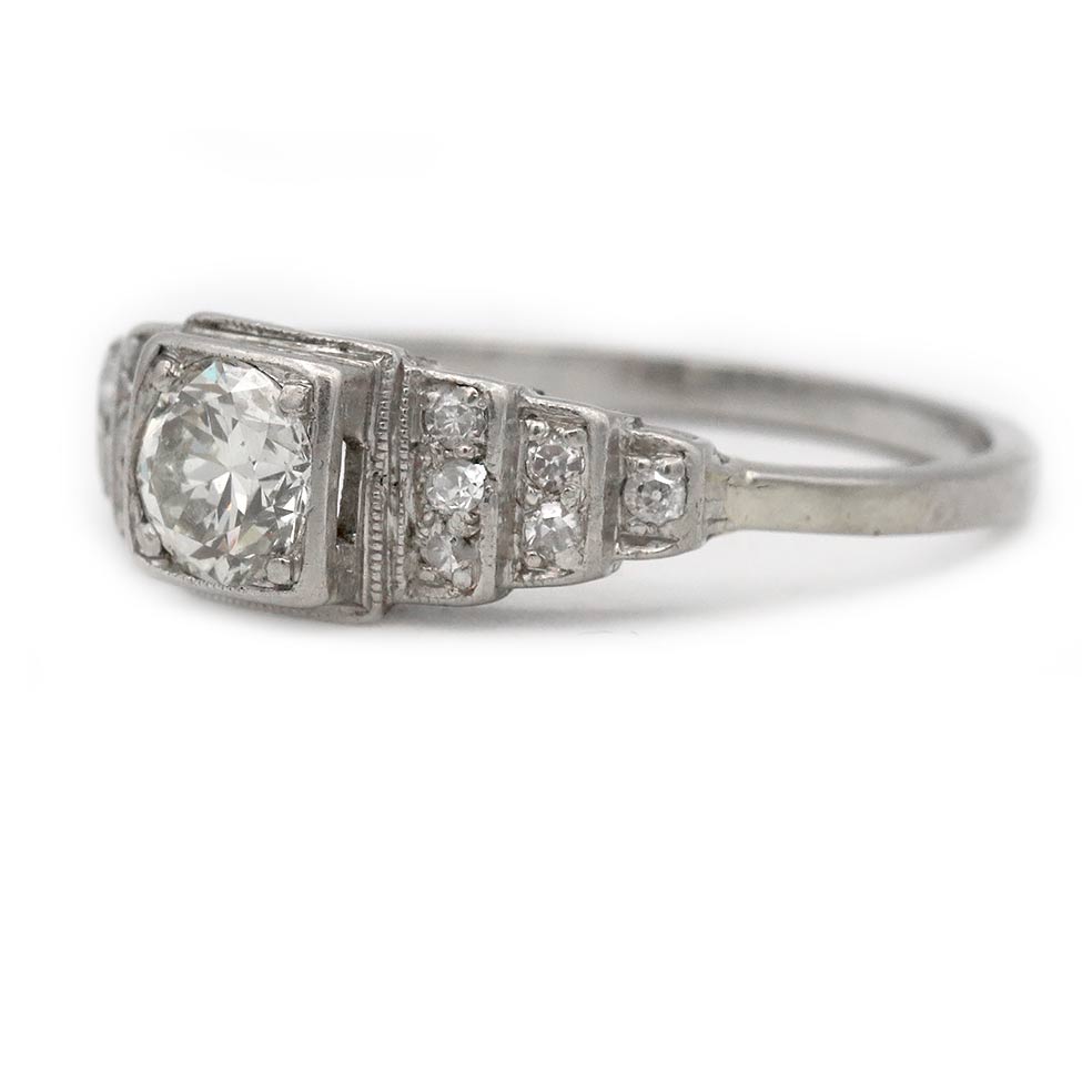 Vintage .74 CTW European Cut Diamond Art Deco Engagement Ring Tiered Side Diamonds