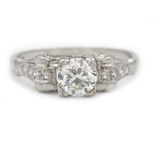 Art Deco .70 CTW Platinum Engraved Mine Cut Solitaire Vintage Engagement Ring