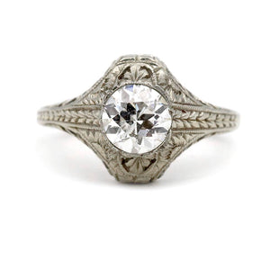 Art Deco .80 CTW Old Euro Diamond Solitaire Vintage Engagement Ring