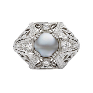 Edwardian 1.40 CTW Pearl Old Mine Cut Diamond Platinum Antique Engagement Ring