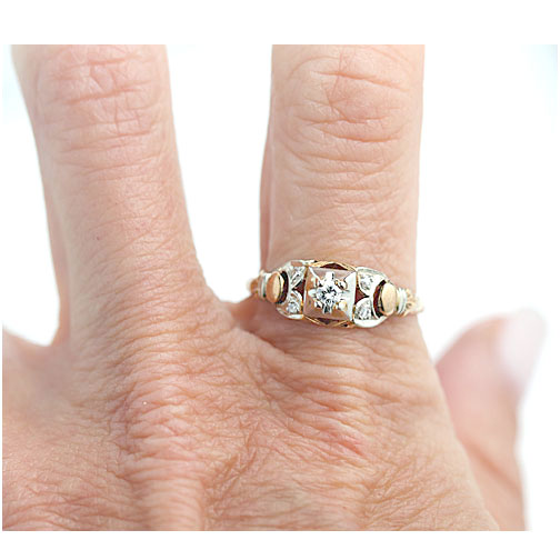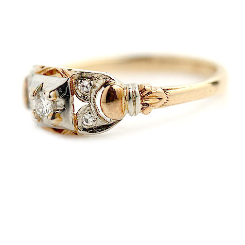 Mid-Century .10 CTW 1940s 14 Karat Two Tone Vintage Diamond Engagement Ring