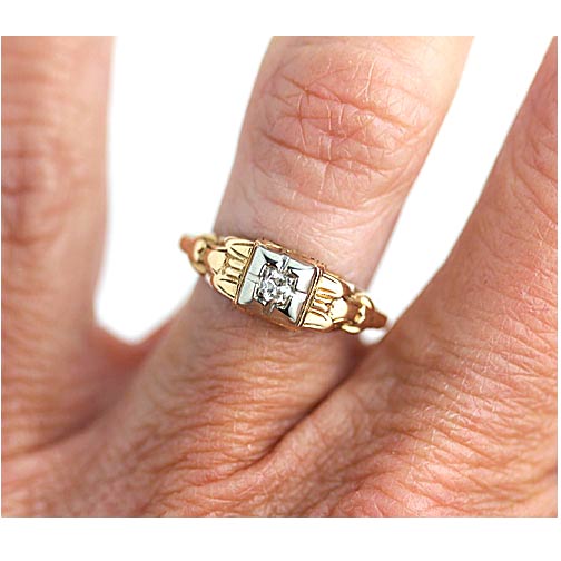 Antique .10 CTW 14 Karat Two Tone Solitaire Mid-Century Diamond Ring with Filigree