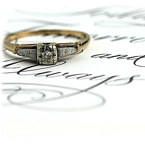 Mid-Century .07 CTW 1940s 14 Karat Two Tone Diamond Antique Engagement Ring