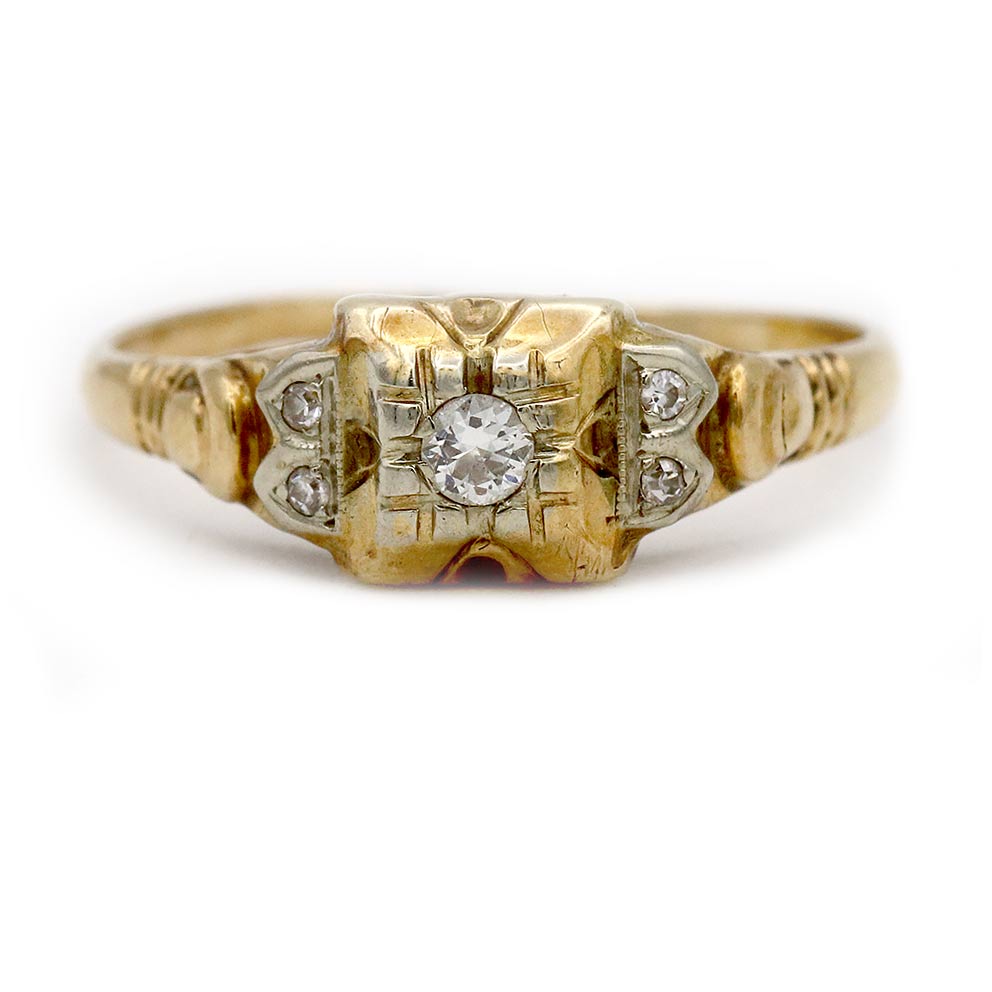 Mid-Century .15 CTW 14K Two Tone Diamond Vintage Engagement Ring with Side Stones