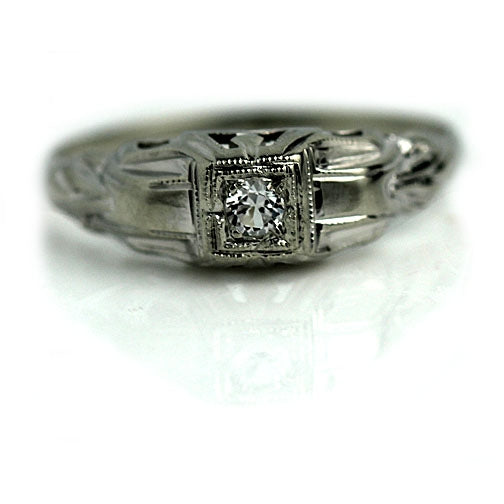 Petite Ring .08 CTW 14 Karat White Gold Antique Engagement Ring with Milgrain