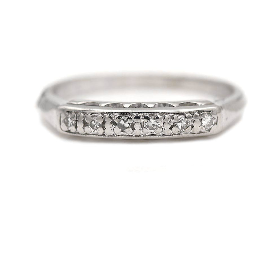 Vintage 6 Stone Platinum & Diamond Wedding Ring Size 7