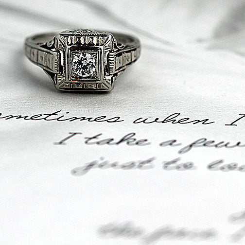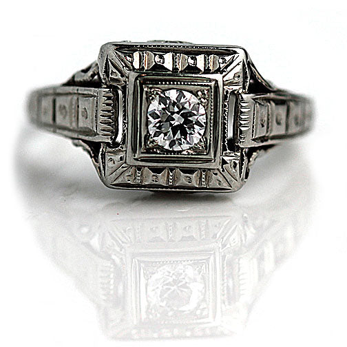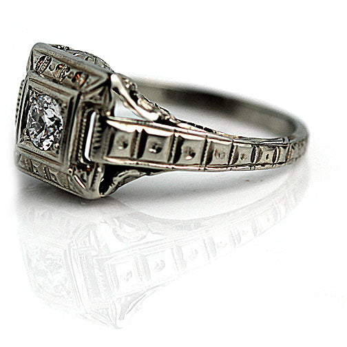 Antique .25 Ct Square European Cut Diamond Art Deco Engagement Ring