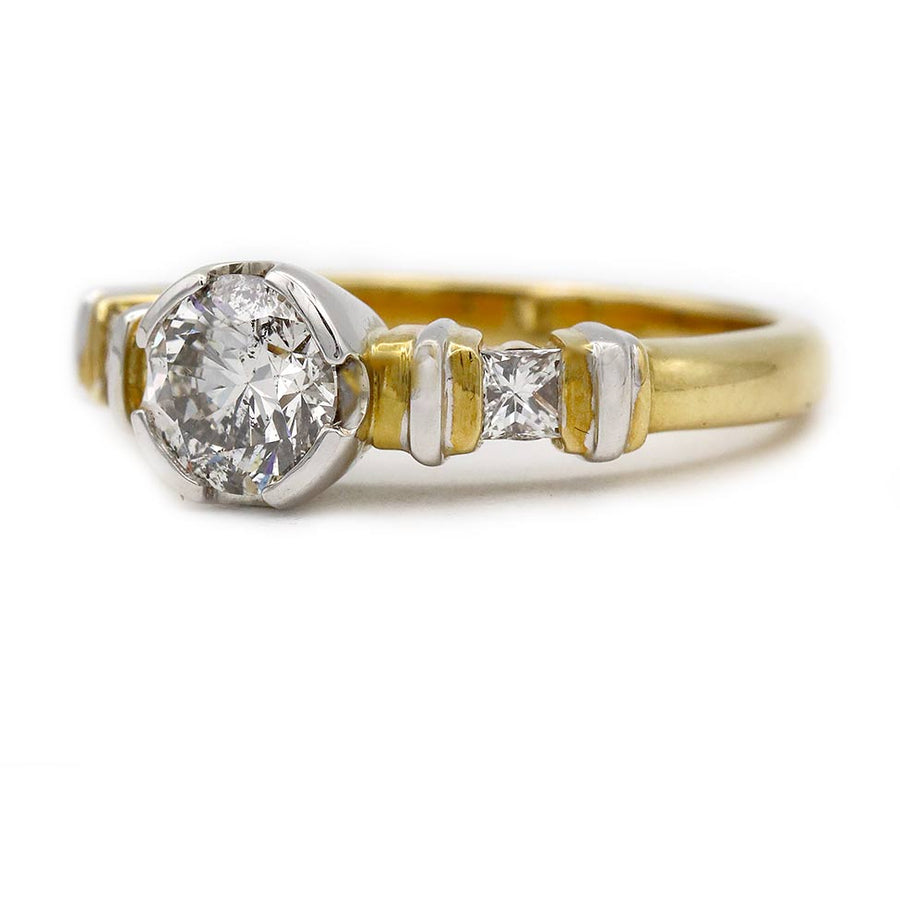 Vintage Bezel Set Diamond Engagement Ring in Two-Tone Gold | 1980s