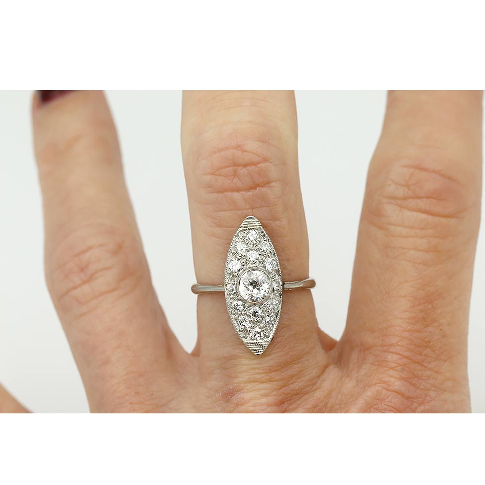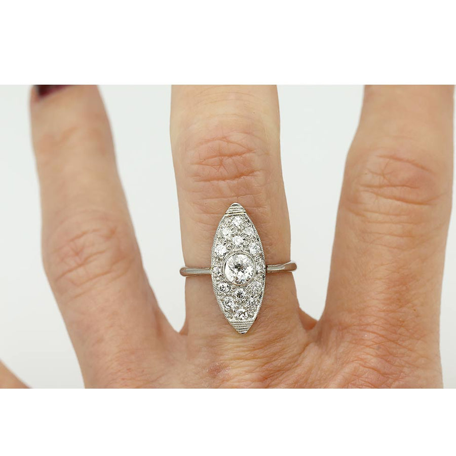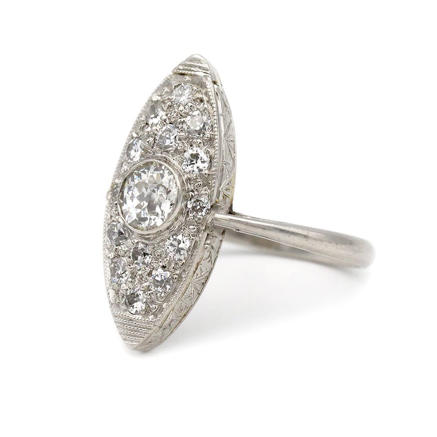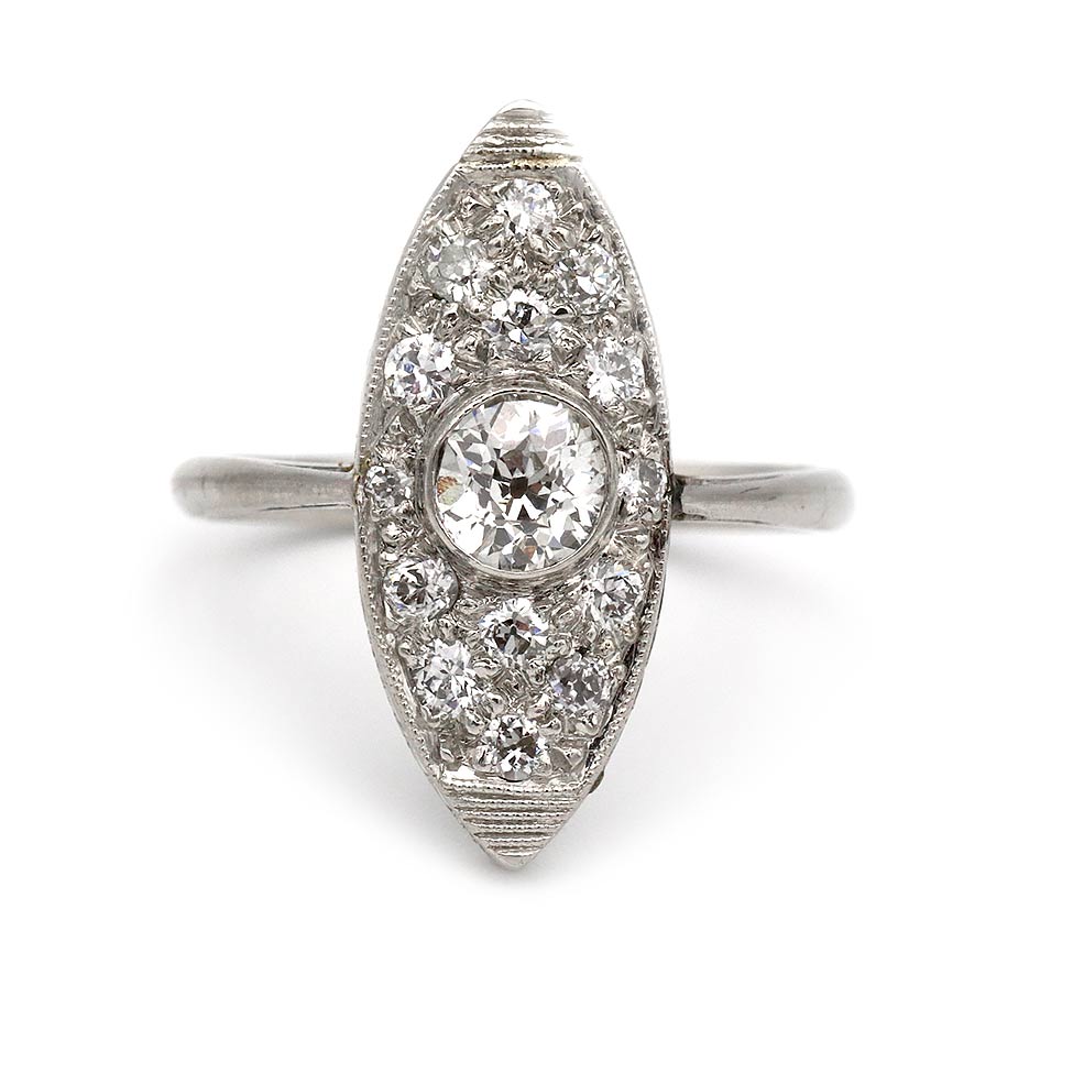 Mid-Century .92 CTW Navette Antique Diamond Dinner Ring