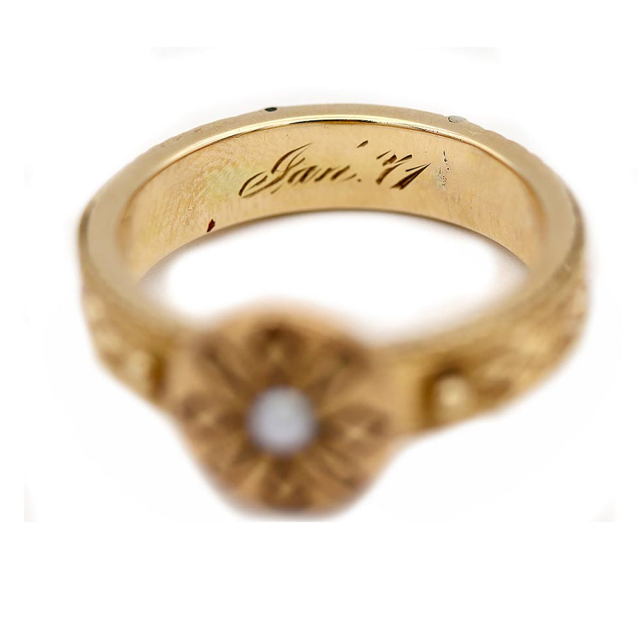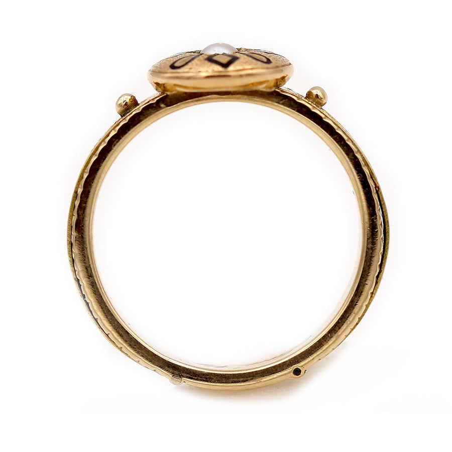 Antique Georgian 9 Kt Yellow Gold Pearl Onyx Enamel Mourning Ring