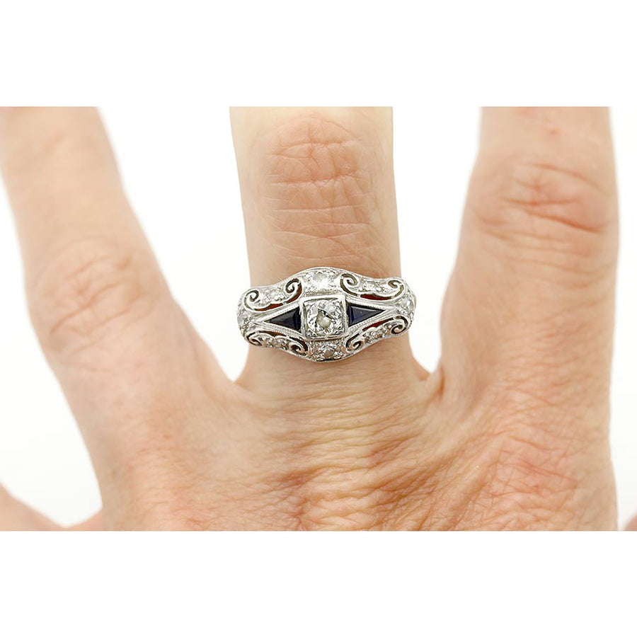 Art Deco .55 CTW Old Mine Cut Diamond & Sapphire Antique Engagement Ring