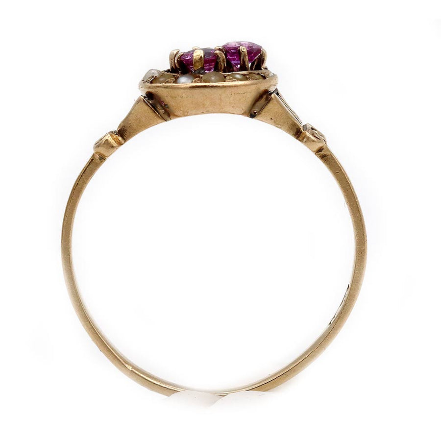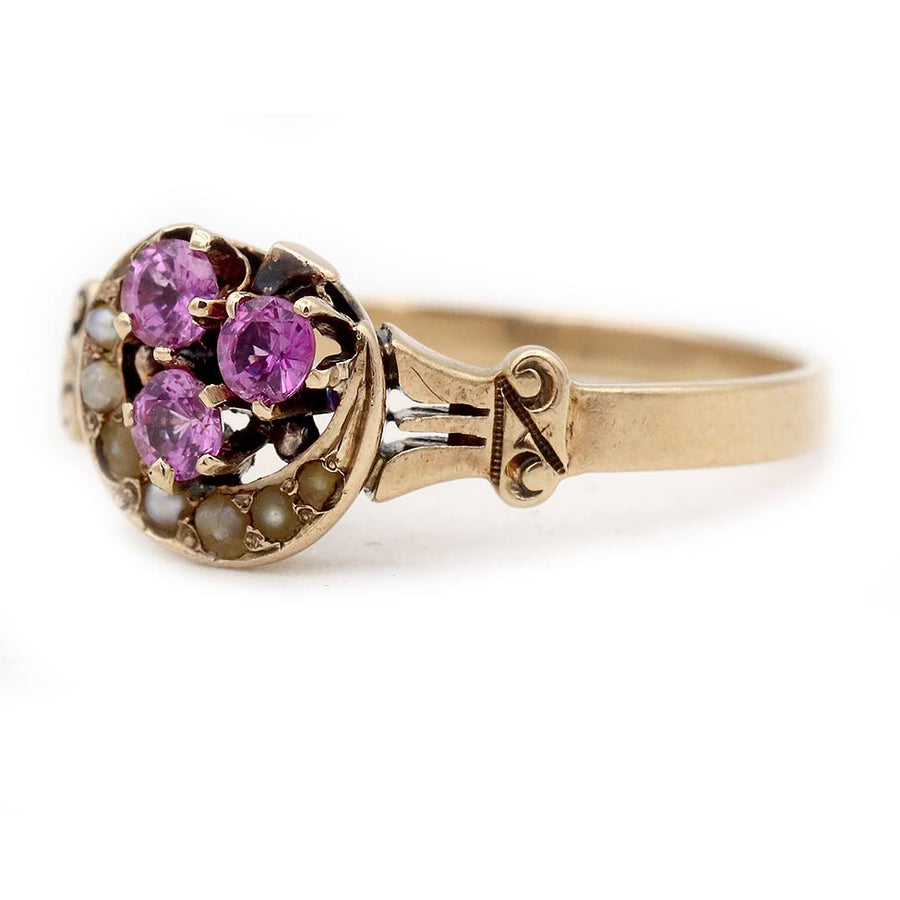 Victorian Pink Sapphire Engagement Ring with Seed Pearls in 10K Rose Gold