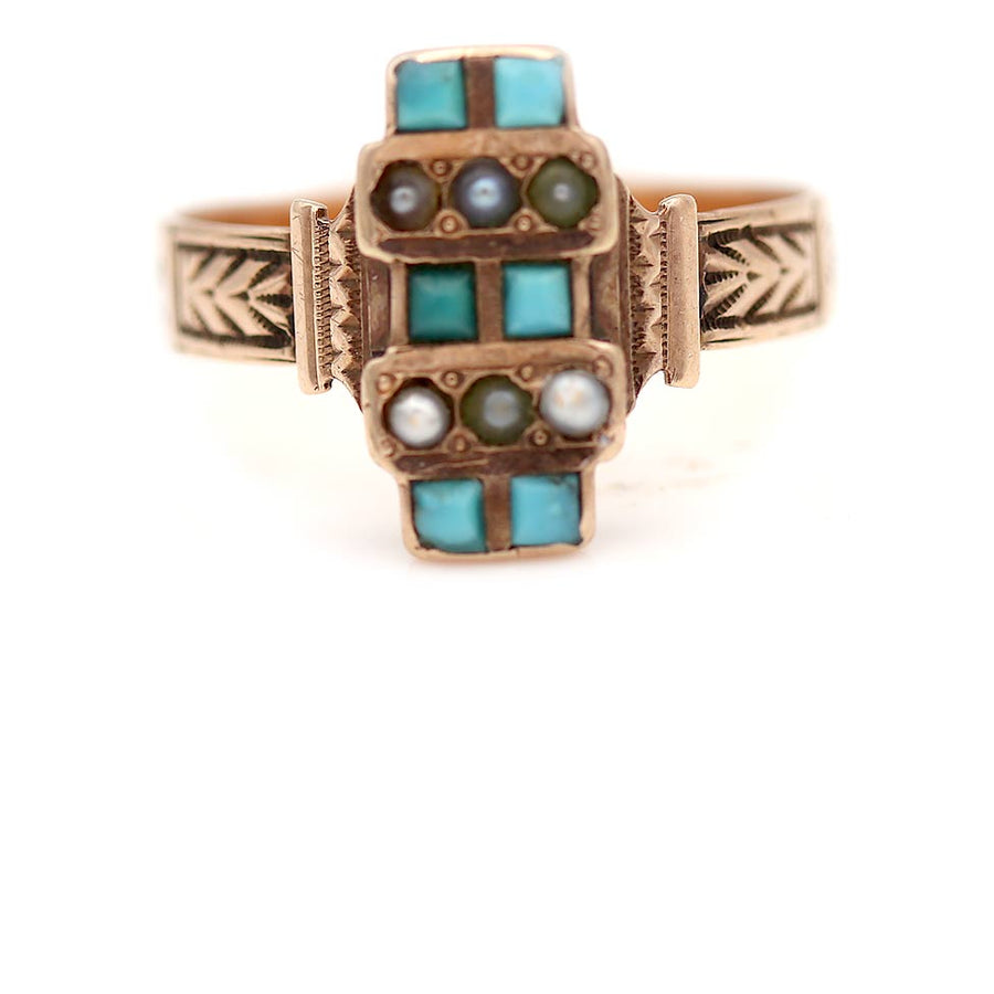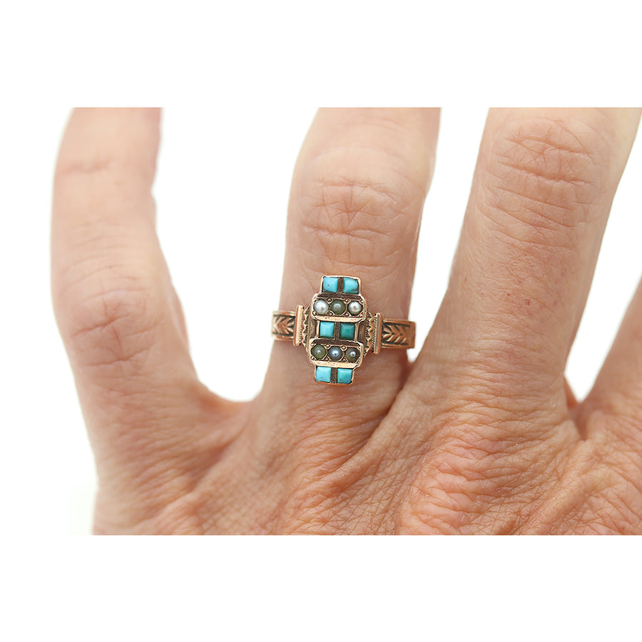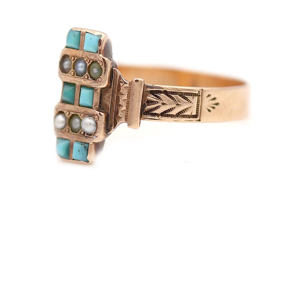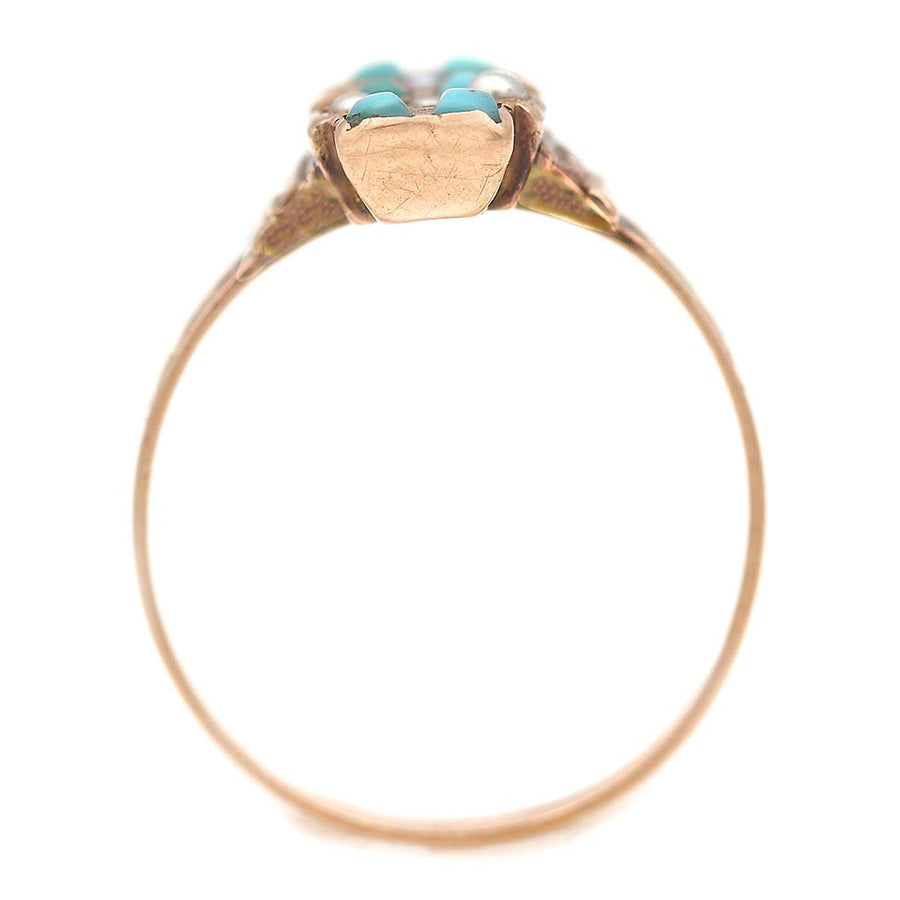 Victorian Turquoise and Pearl Engagement Ring | Antique Filigree Gold