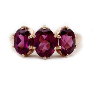 Vintage Three Stone Oval Cut Garnet Engagement Ring 3.50 Ctw
