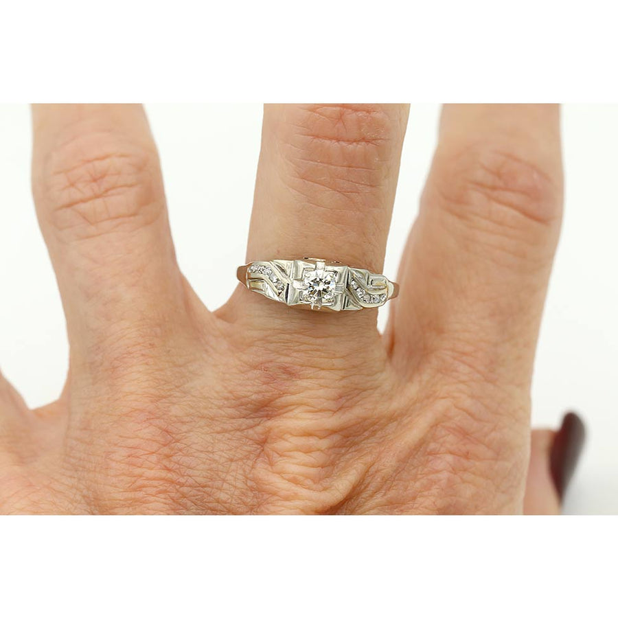 Art Deco Engagement Ring Asymmetric .50 CTW Diamond Antique Engagement Ring