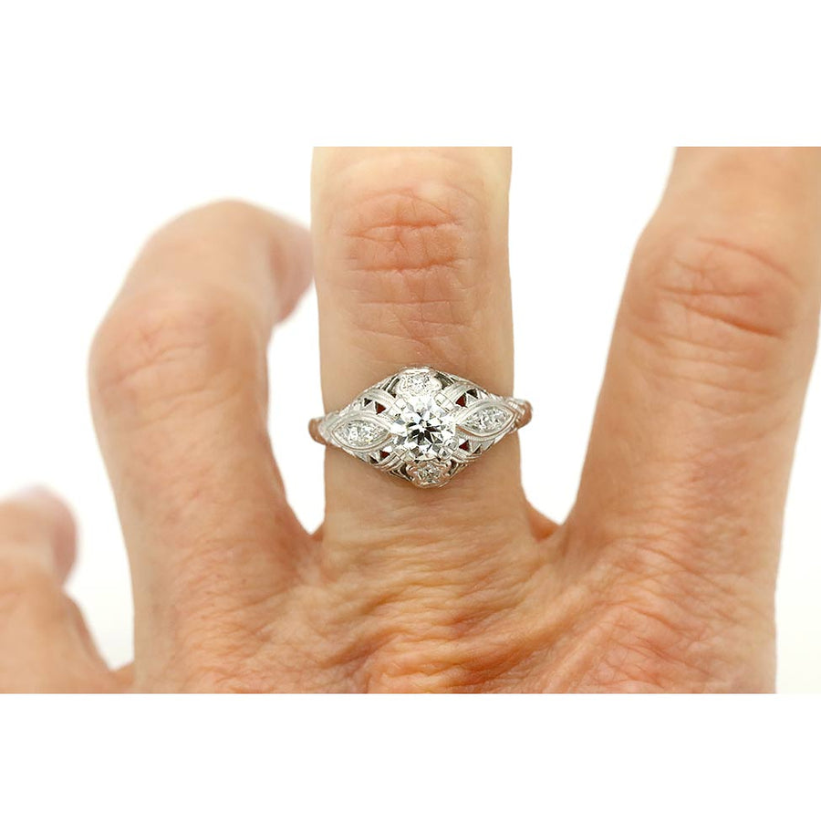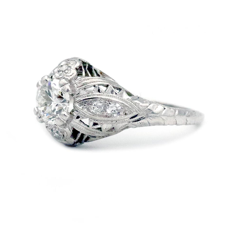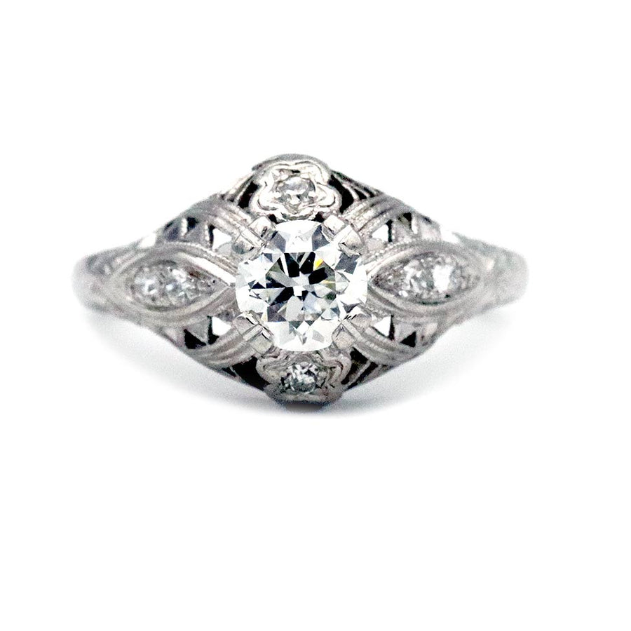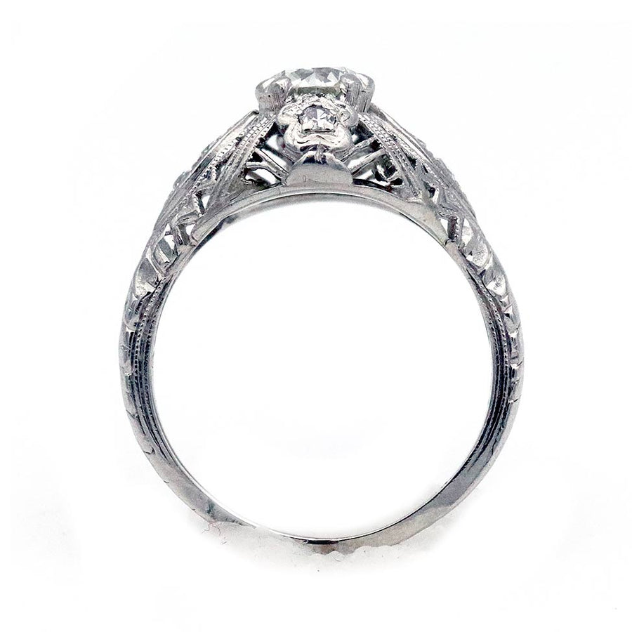 Art Deco .73 CTW Filigree Platinum Antique Engagement Ring Circa 1930s