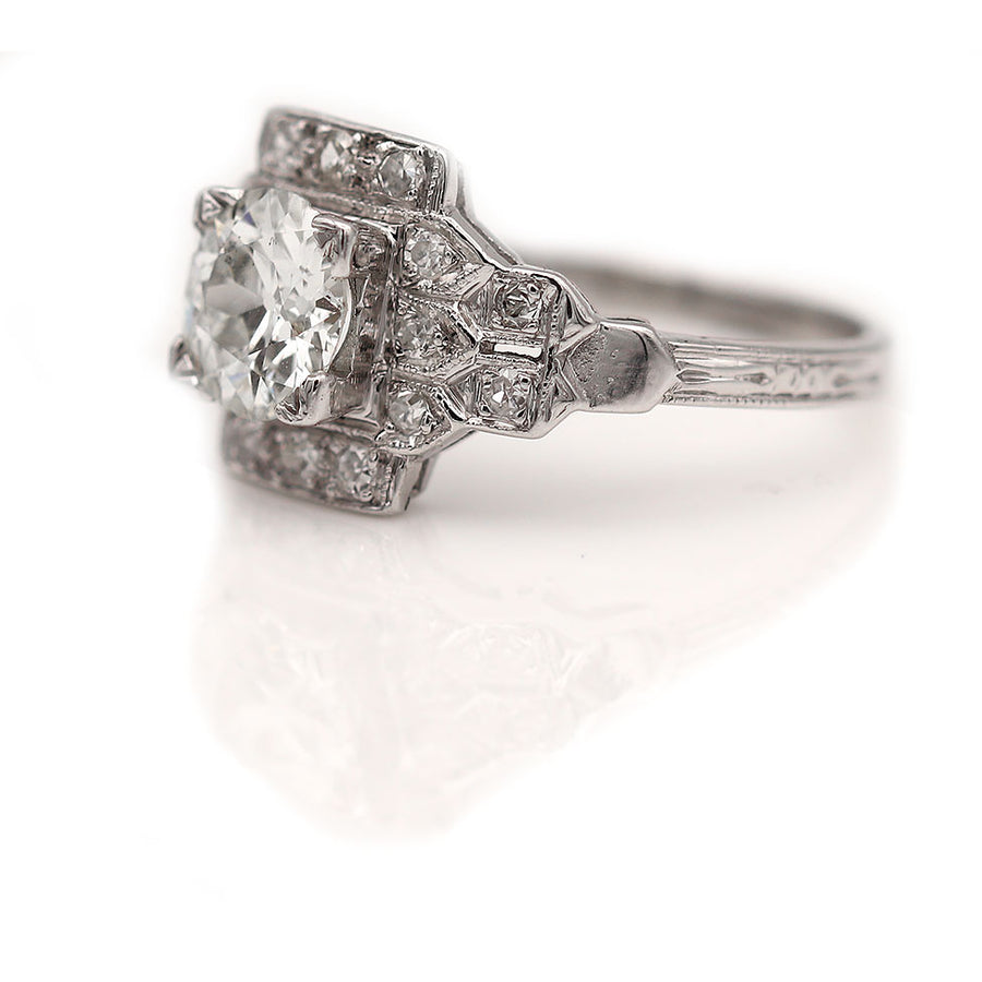 Antique 1.42 CTW Halo European Cut Platinum Art Deco Engagement Ring