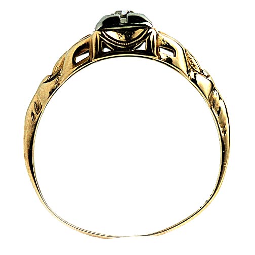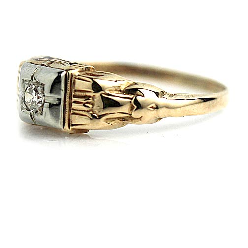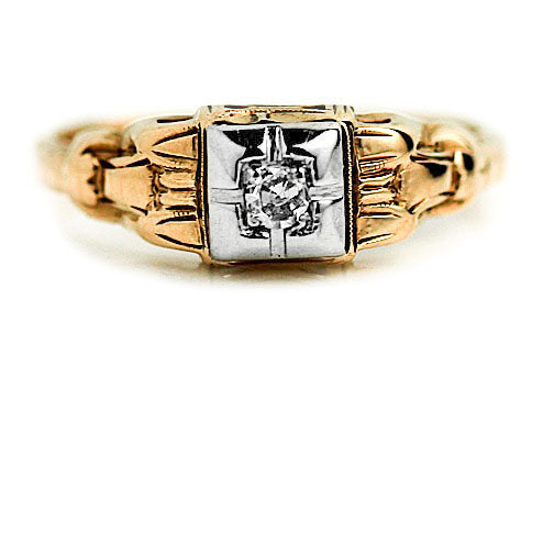 Antique .10 CTW 14 Karat Two Tone Solitaire Mid-Century Diamond Ring with Filigree