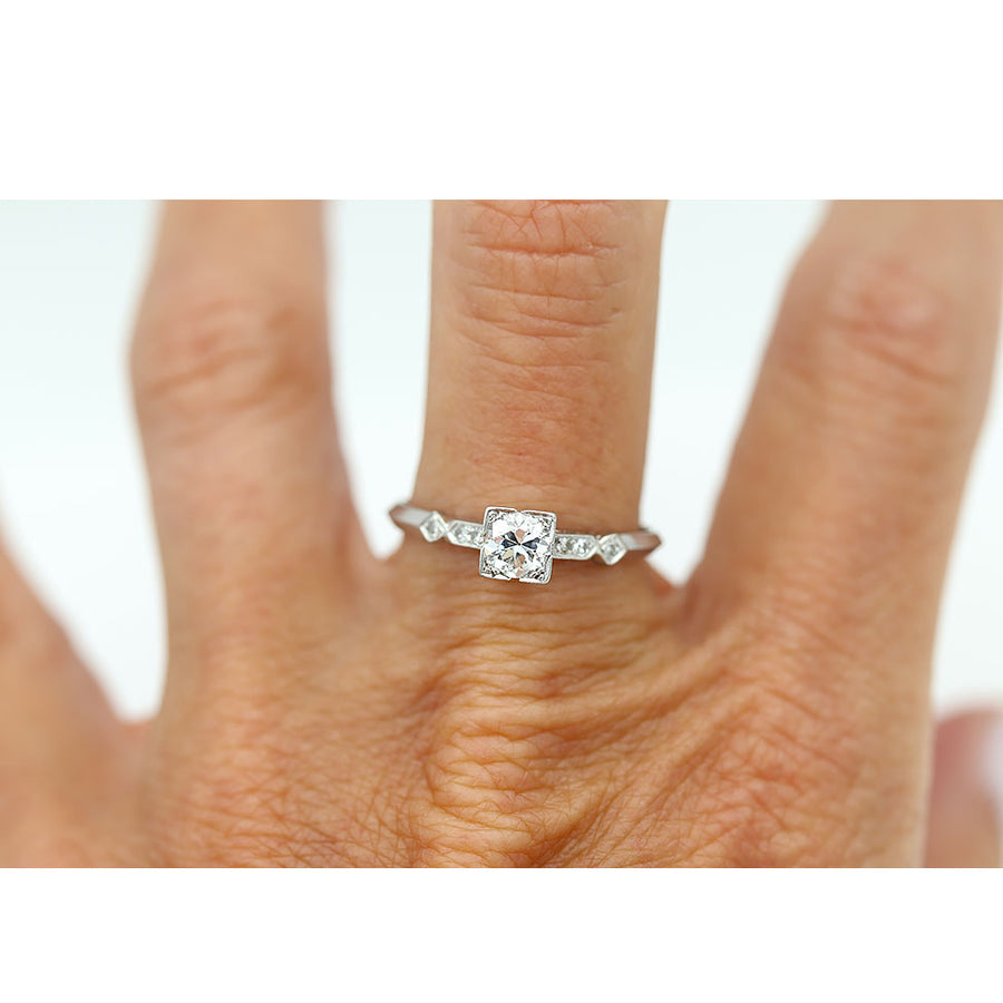 Antique 1940s Geometric Square Old European Cut Diamond Engagement Ring