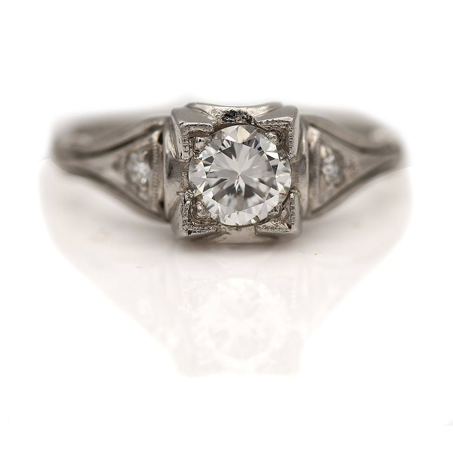 Antique .50 CTW Transitional Cut Diamond Art Deco Engagement Ring