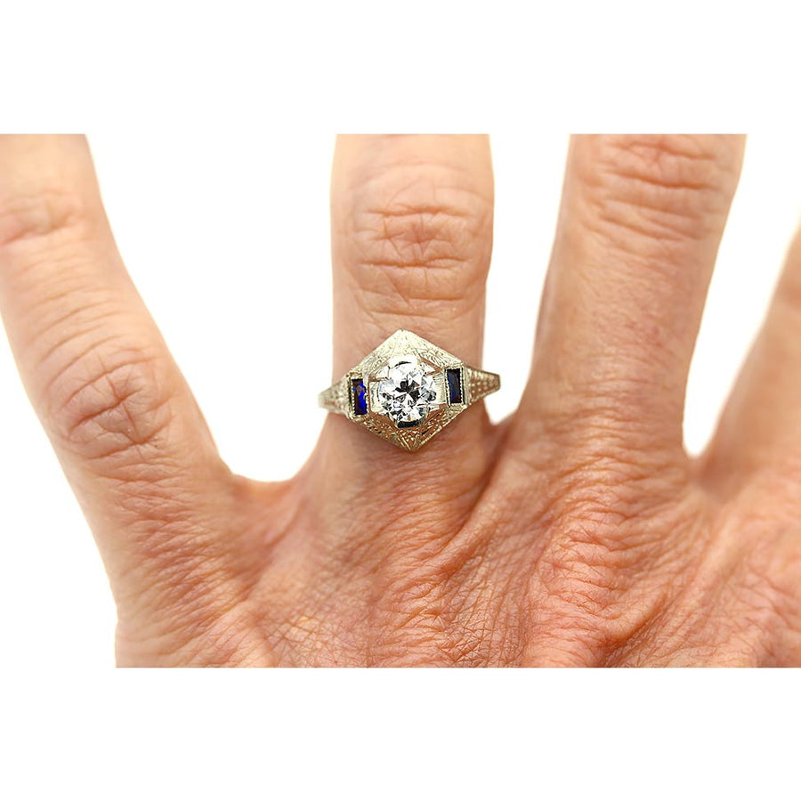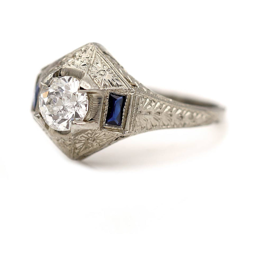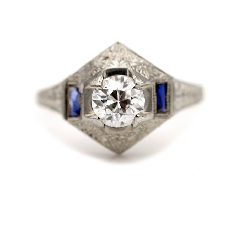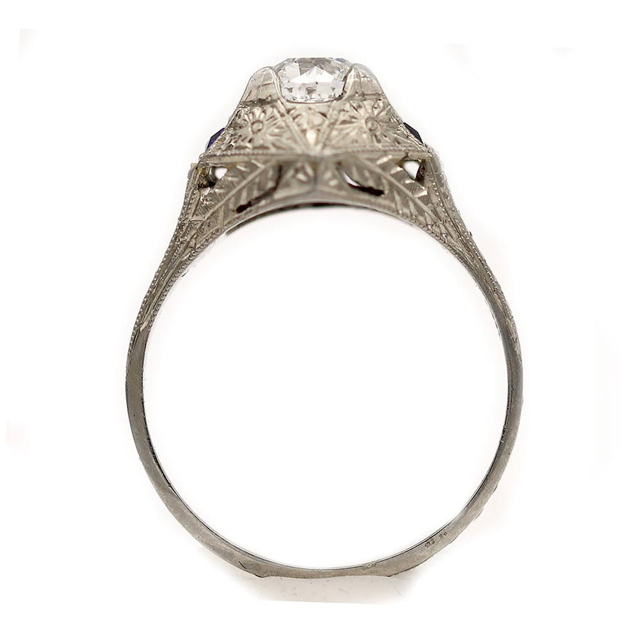 Antique .73 CTW Diamond Art Deco Engagement Ring with Sapphire Baguettes GIA H/SI1