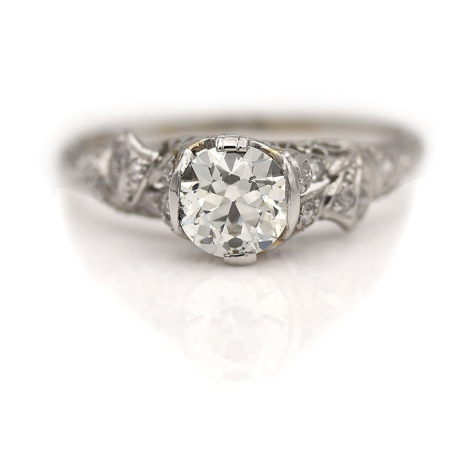 Art Deco 1.16 CTW European Cut Diamond Platinum Antique Engagement Ring GIA K/SI1