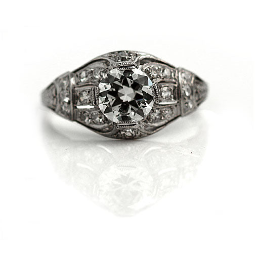 Art Deco 1.42 CTW Old European Cut Diamond Platinum Antique Engagement Ring GIA J/SI2