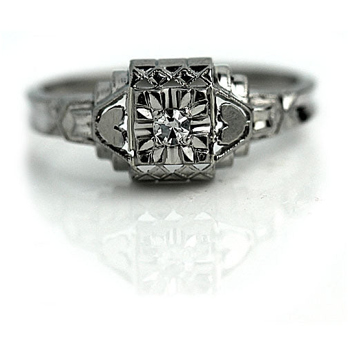 Art Deco .10 CTW Solitaire Diamond Antique Engagement Ring with Heart Motif