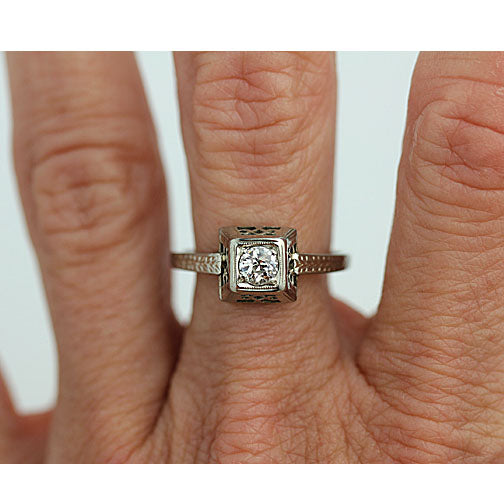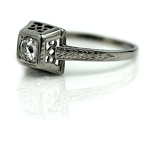 Art Deco .25 CTW Square Antique Engagement Ring Filigree Engravings