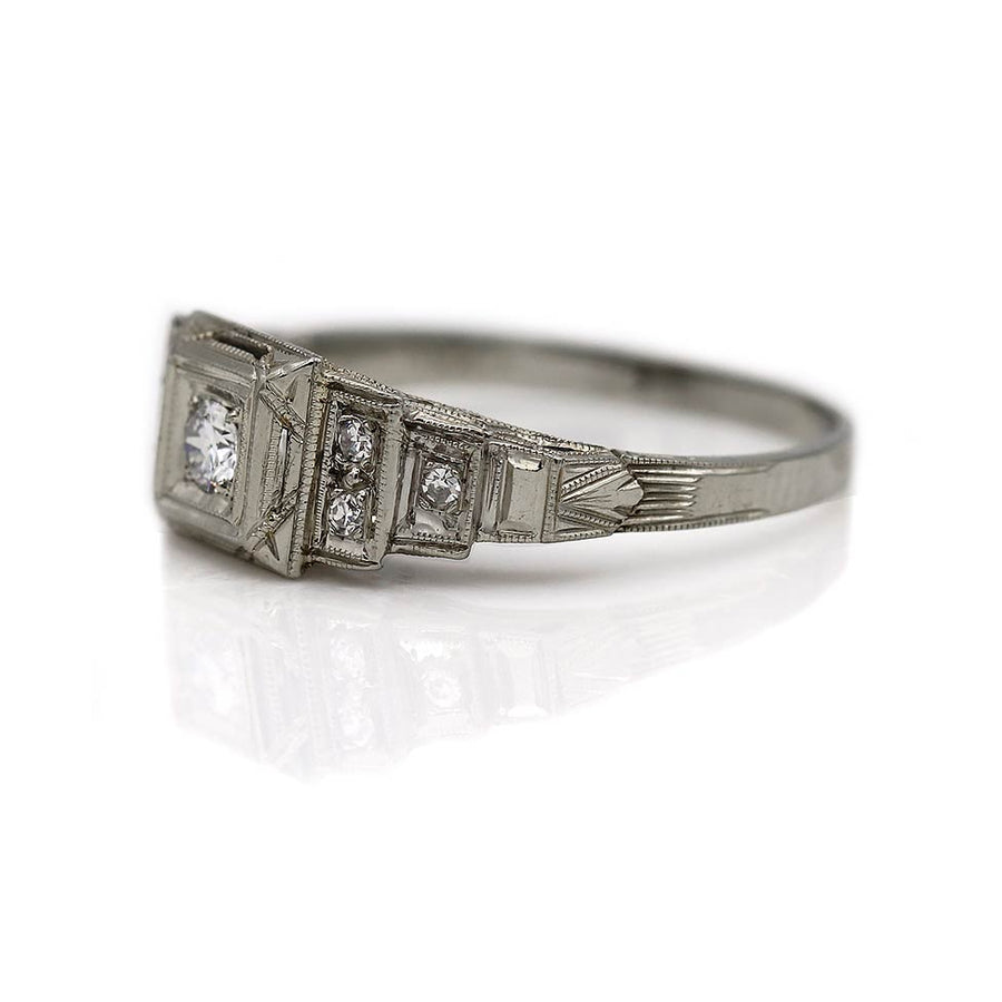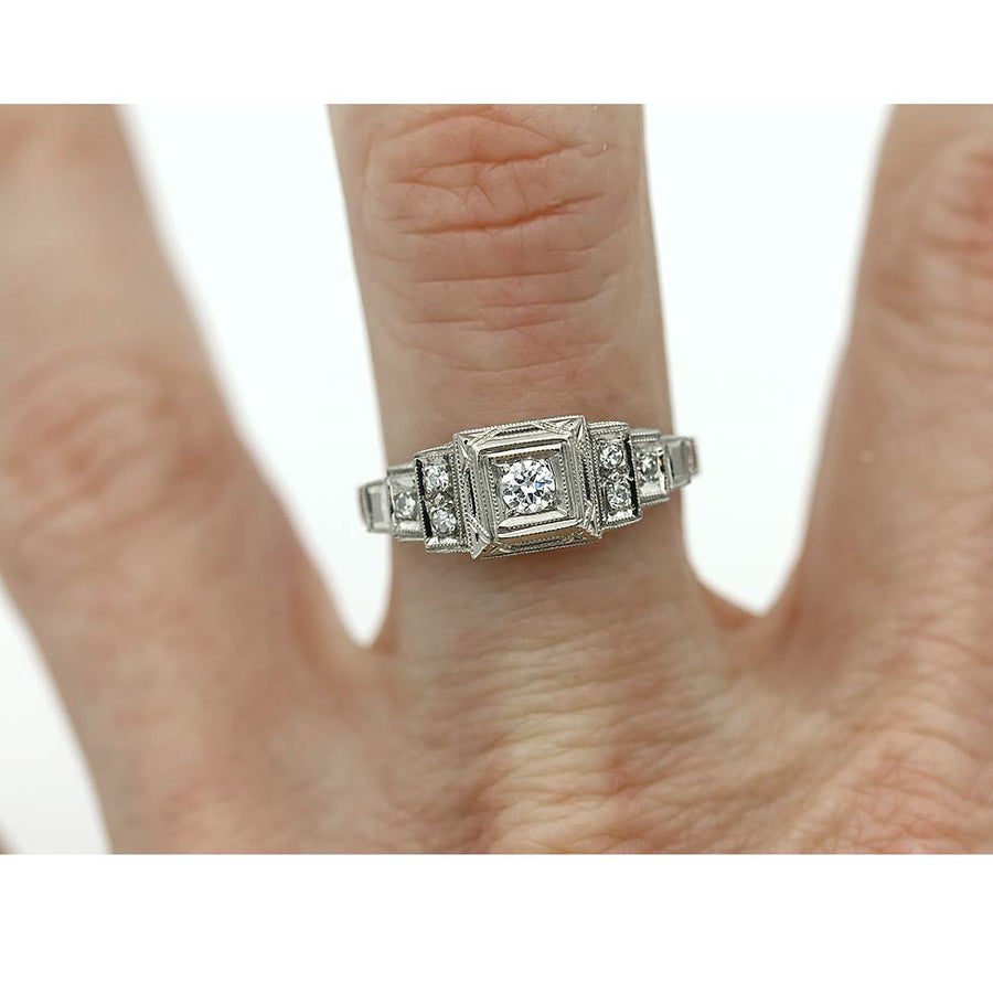 Art Deco .27 CTW Diamond Antique Engagement Ring with Tiered Side Diamonds