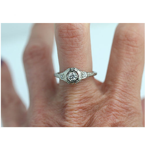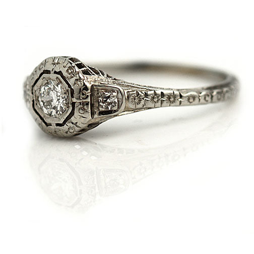 Art Deco .29 CTW European Cut 18 Karat White Gold Antique Engagement Ring