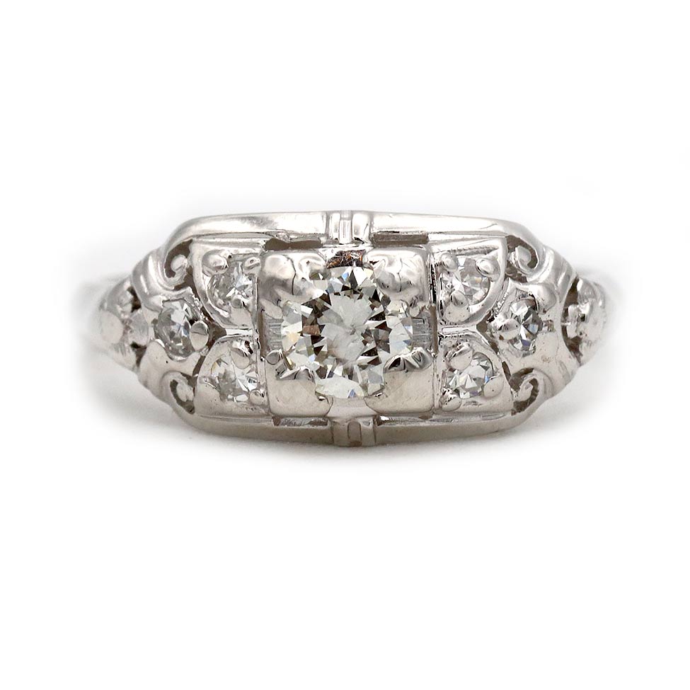 Art Deco .37 CTW European Cut Diamond Antique Engagement Ring