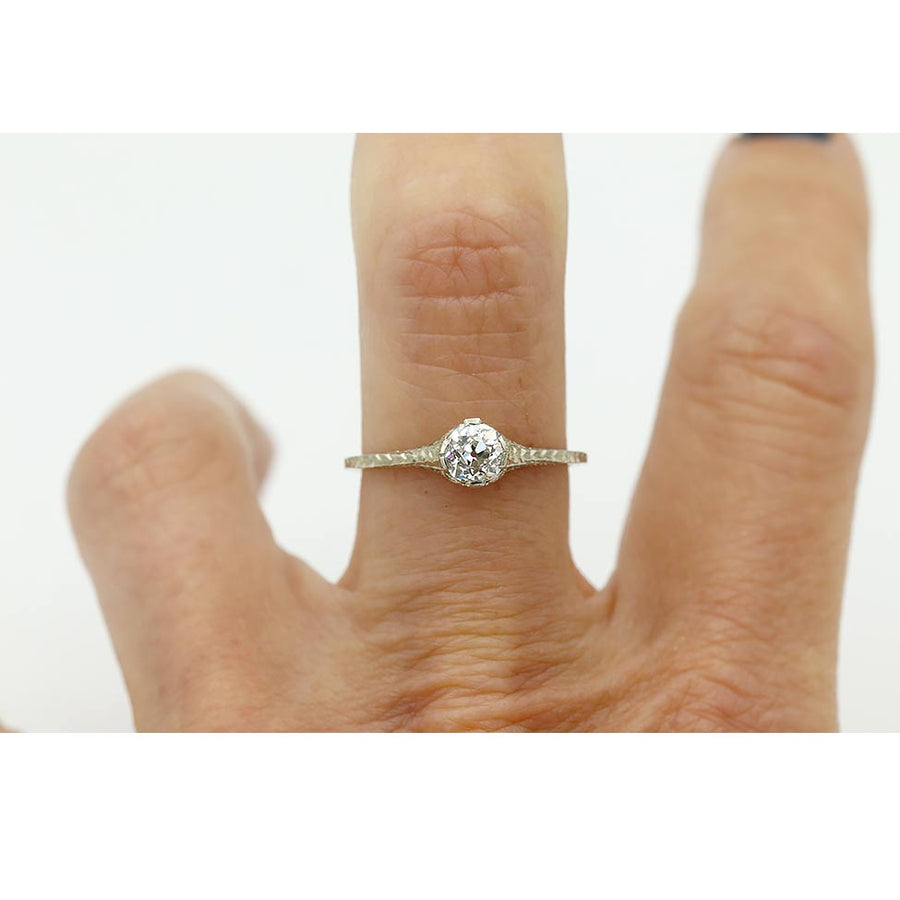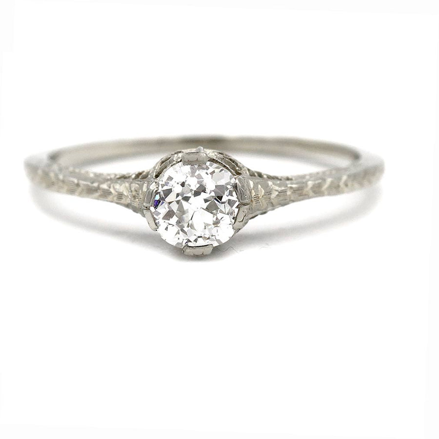 Art Deco .40 CTW Thin Filigree Band Mine Cut Antique Diamond Engagement Ring