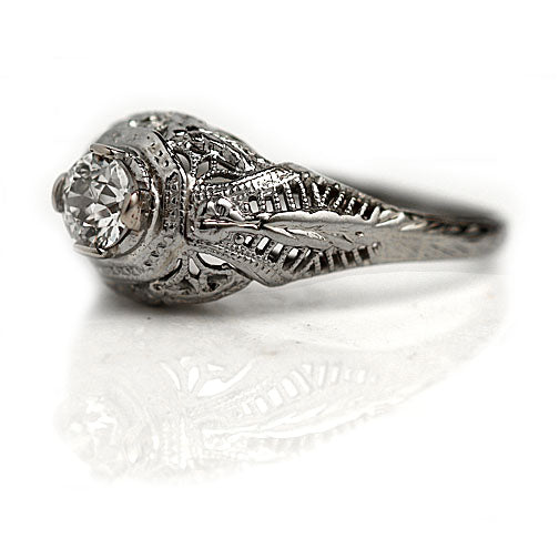 Art Deco .41 CTW Old European Cut Diamond Solitaire Antique Engagement Ring GIA J/VS1