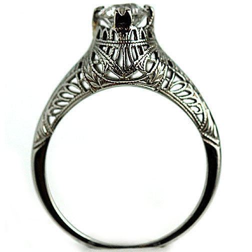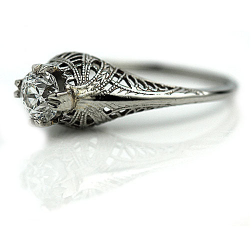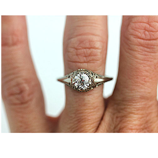 Art Deco .70 CTW 18 Karat White Gold Engraved Solitaire Antique Engagement Ring