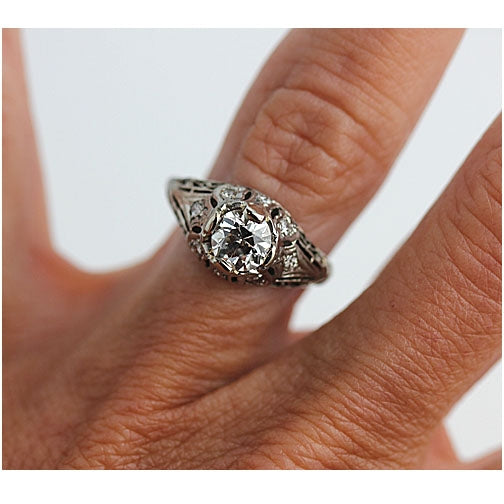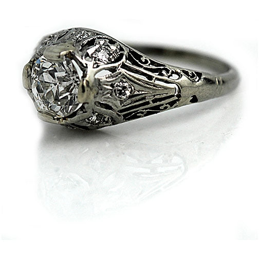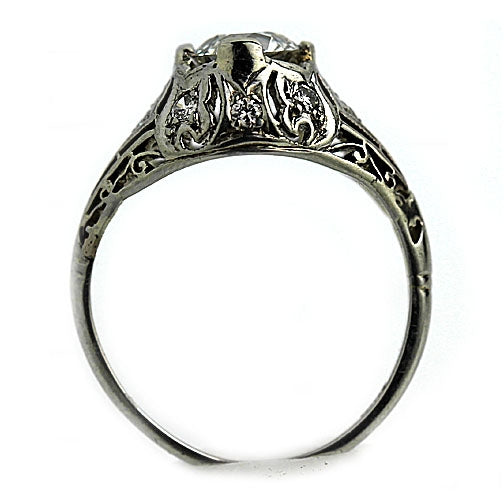 Art Deco .96 CTW Old Euro Diamond Antique Engagement Ring 18 Karat White Gold EGL F/SI2