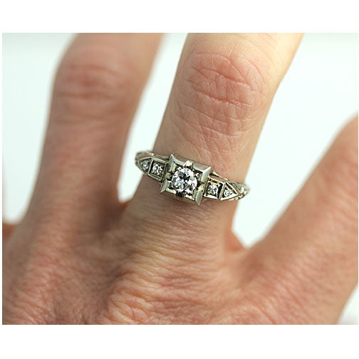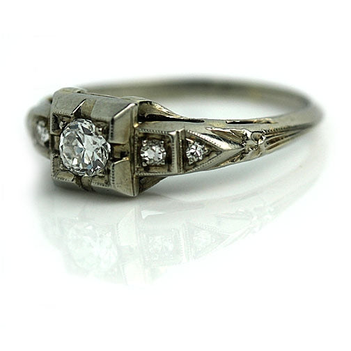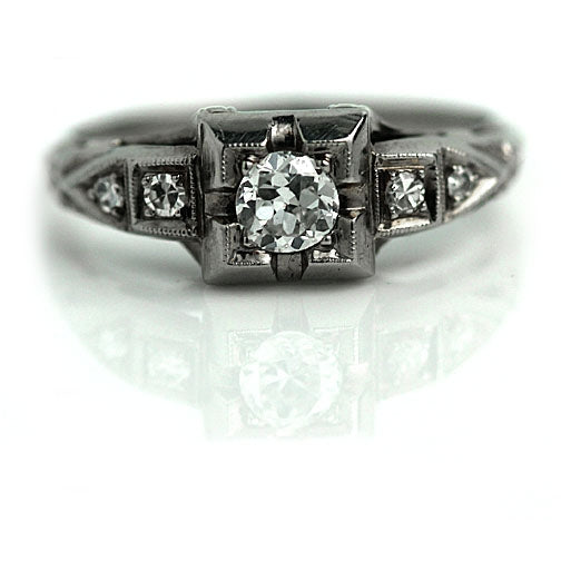 Art Deco .36 CTW Antique Diamond Engagement Ring with Side Stones