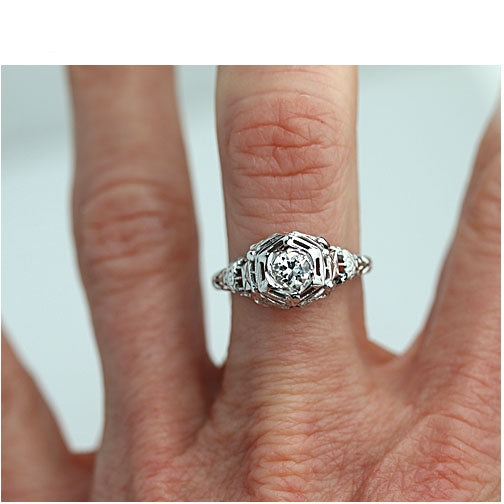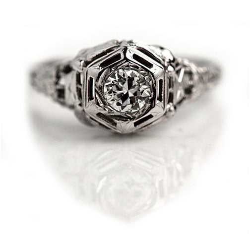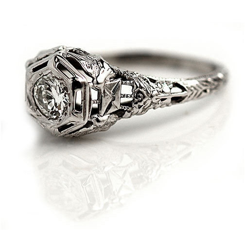 Art Deco .35 CTW Solitaire Antique Engagement Ring with Open Metal Work