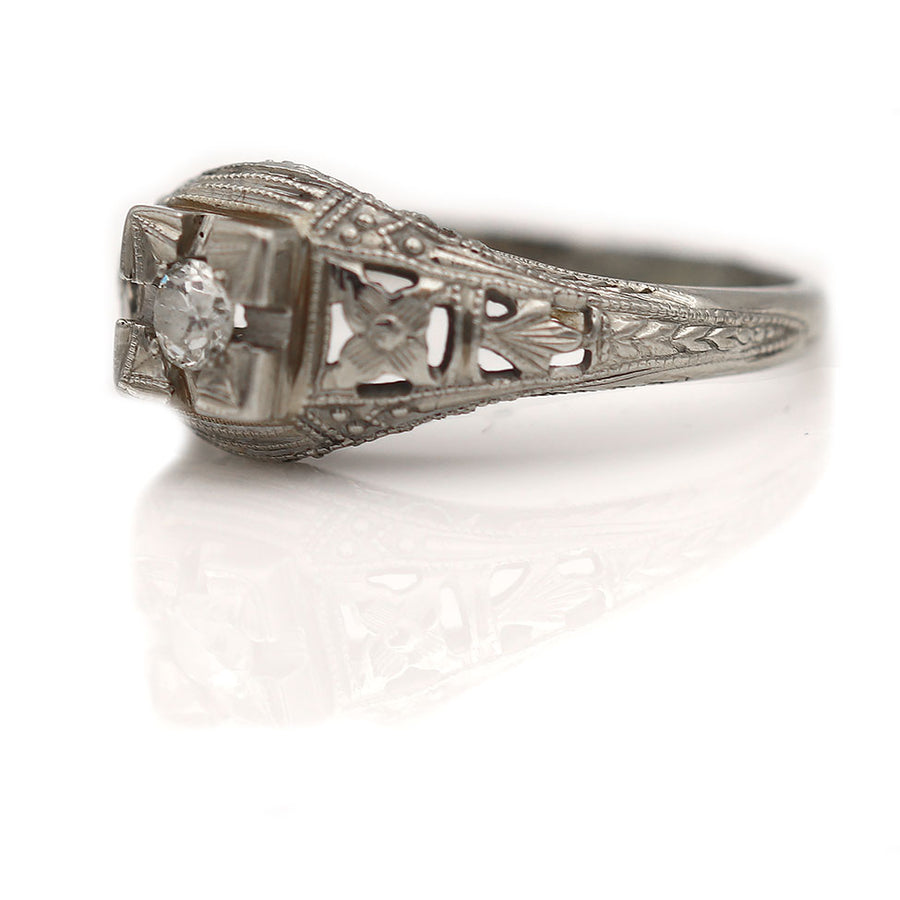 Art Deco .15 CTW Floral Old European Cut Solitaire Antique Diamond Engagement Ring