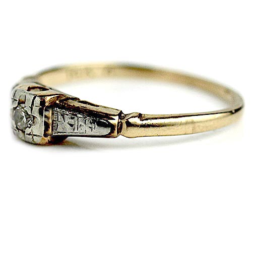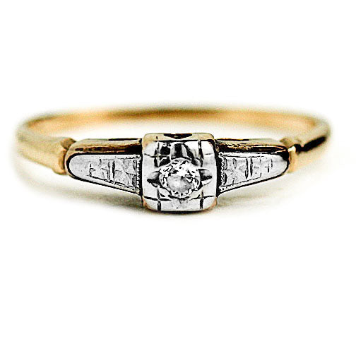 Mid-Century .07 CTW 1940s 14 Karat Two Tone Diamond Antique Engagement Ring