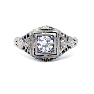 Art Deco .40 CTW Old Mine Cut Diamond Floral Antique Engagement Ring