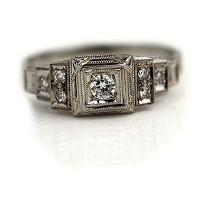Art Deco .27 CTW Diamond Antique Engagement Ring with Tiered Side Diamonds