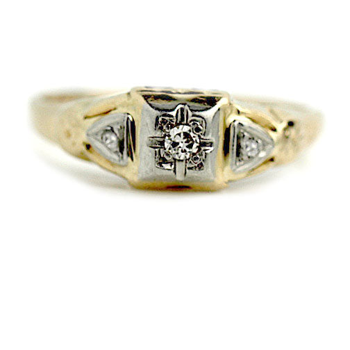 1940s .10 CTW Mid-Century Diamond Engagement Ring with Heart Motif