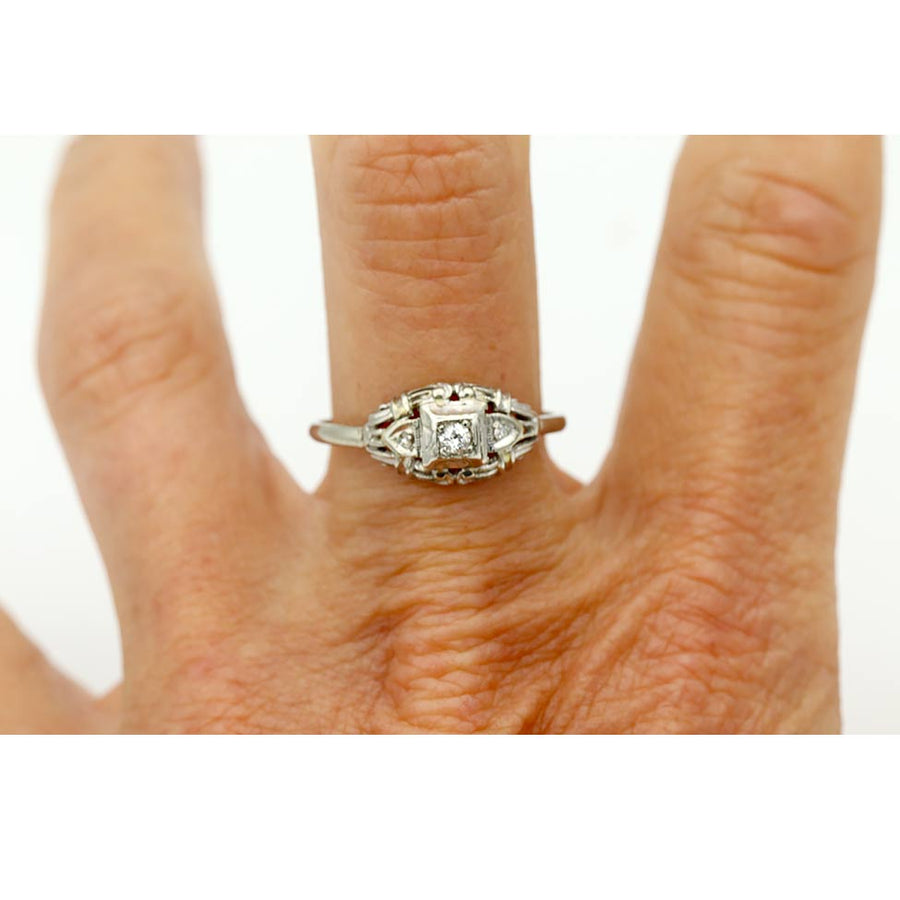 Antique .12 CTW CTW Low Profile Art Deco Diamond Engagement Ring Signed Fidelity