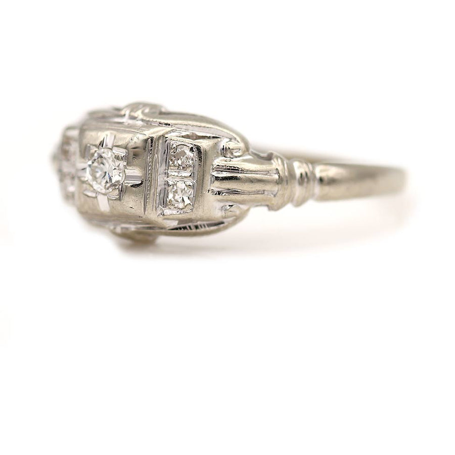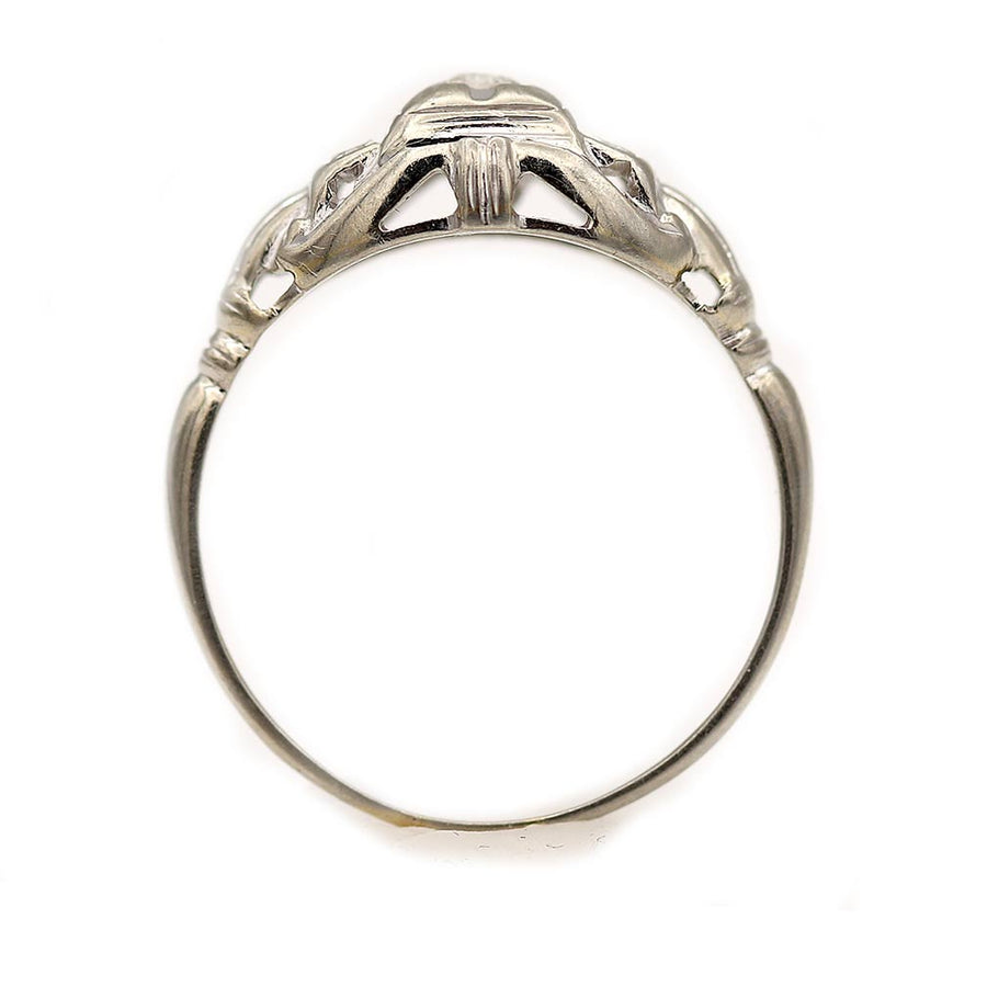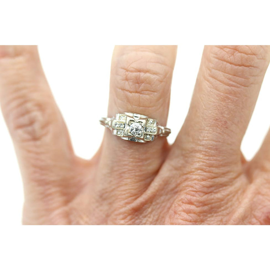 Art Deco .18 CTW Old Euro Cut Diamond 14 Karat White Gold Vintage Diamond Ring