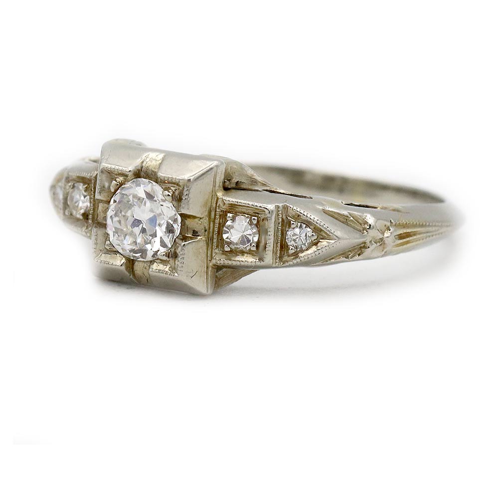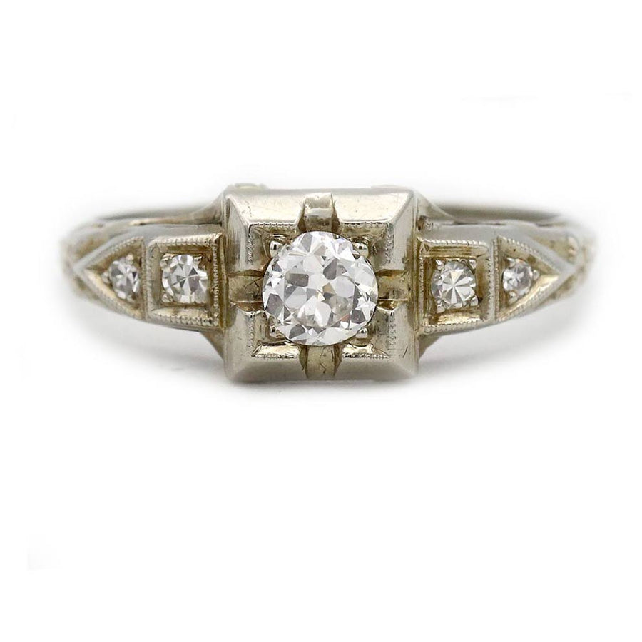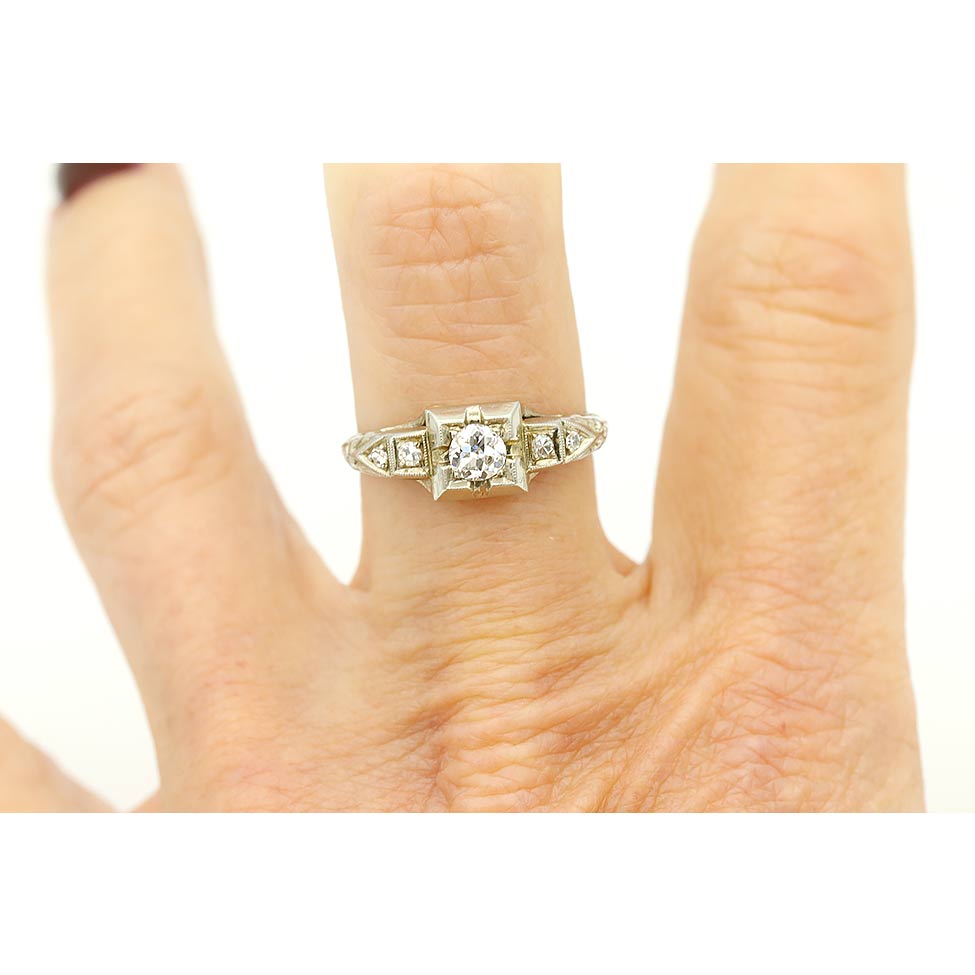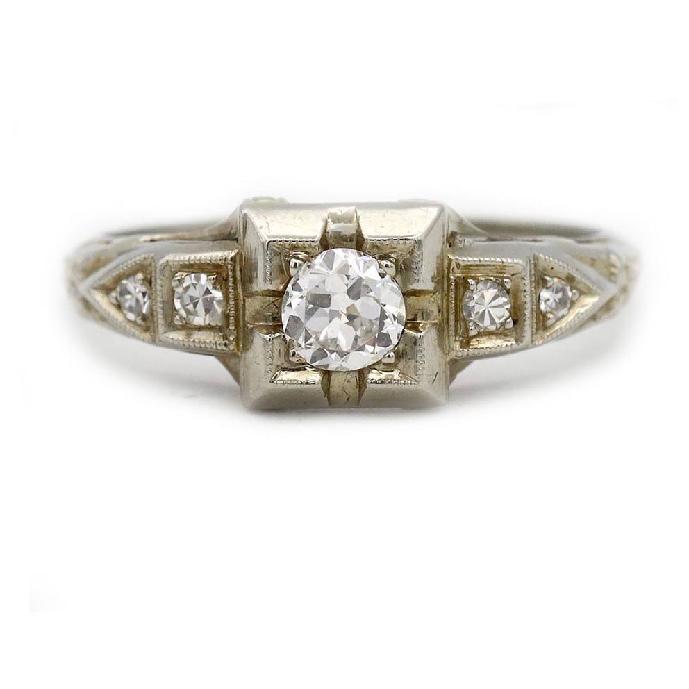 Art Deco .36 CTW Antique Diamond Engagement Ring with Side Stones